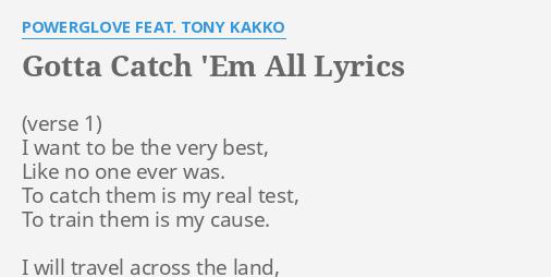 Gotta catch 'em all song lyrics. I wanna be the very best. Like no one ever was. To catch them is my real test.